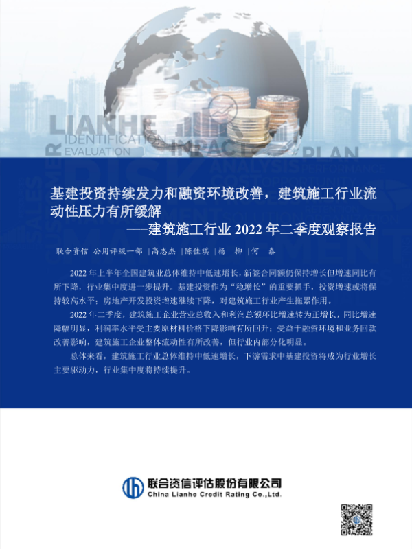 【联合资信】【20220930】建筑施工行业2022年二季度观察报告:基建投资持续发力和融资环境改善,建筑施工行业流动性压力有所缓解-16页