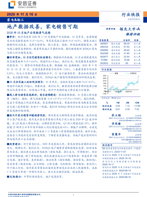 【安信证券】【20201116】地产数据改善,家电销售可期-4页