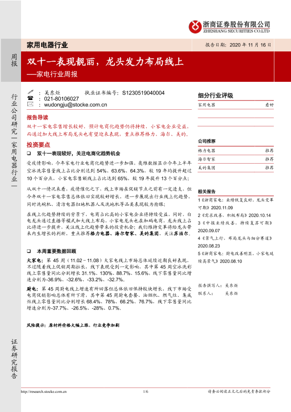 【浙商证券】【20201116】20201116-浙商证券-家电行业周报:双十一表现靓丽,龙头发力布局线上-6页