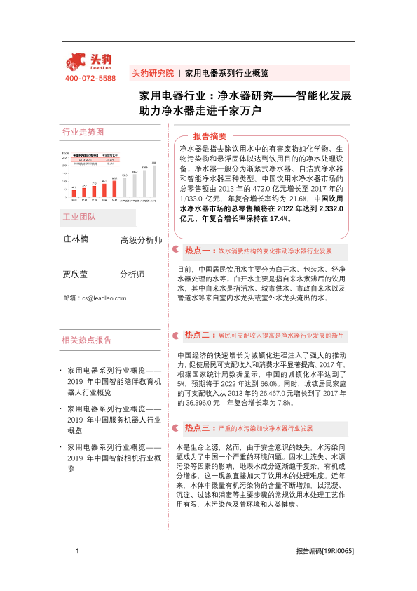 【头豹研究院】【20201119】家用电器行业:净水器研究——智能化发展助力净水器走进千家万户-36页