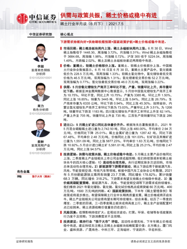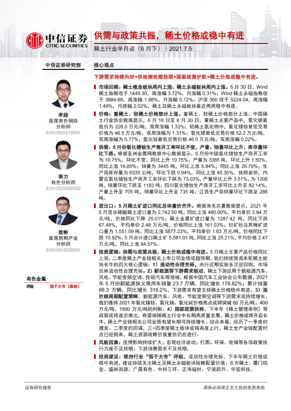 【中信证券】【20210705】稀土行业半月谈(6月下):供需与政策共振,稀土价格或稳中有进-36页