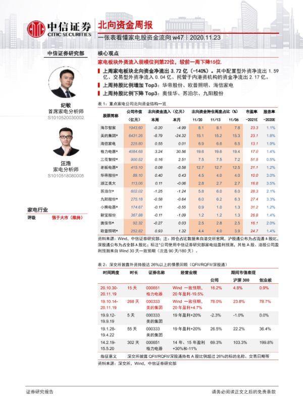 【中信证券】【20201123】一张表看懂家电股资金流向 w47:北向资金周报-2页