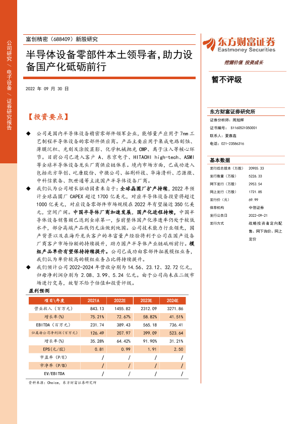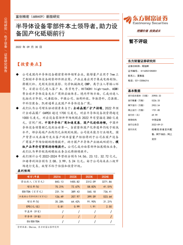 【东方财富证券】【20220930】新股研究:半导体设备零部件本土领导者,助力设备国产化砥砺前行-25页