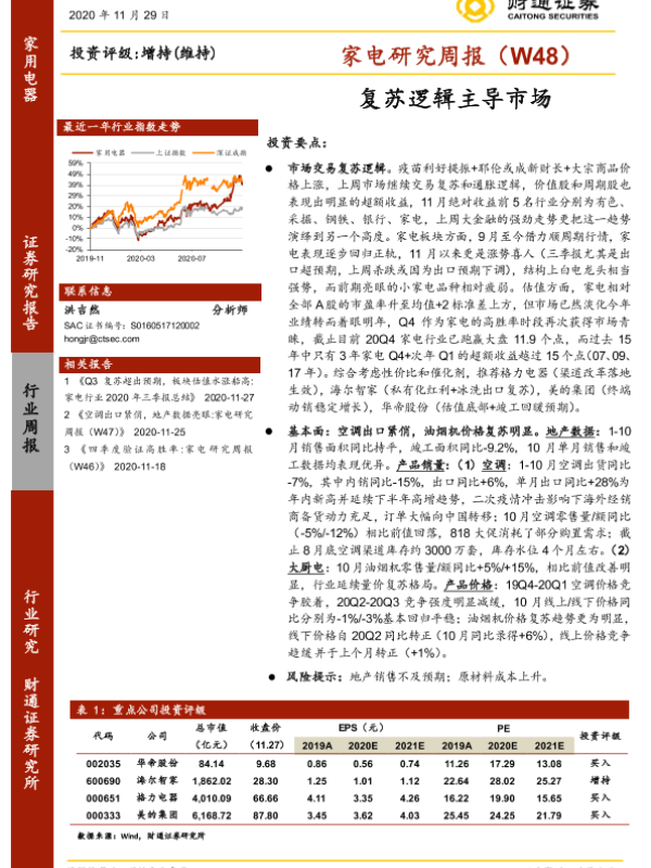 【财通证券】【20201129】20201129-财通证券-家电研究周报(W48):复苏逻辑主导市场-20页
