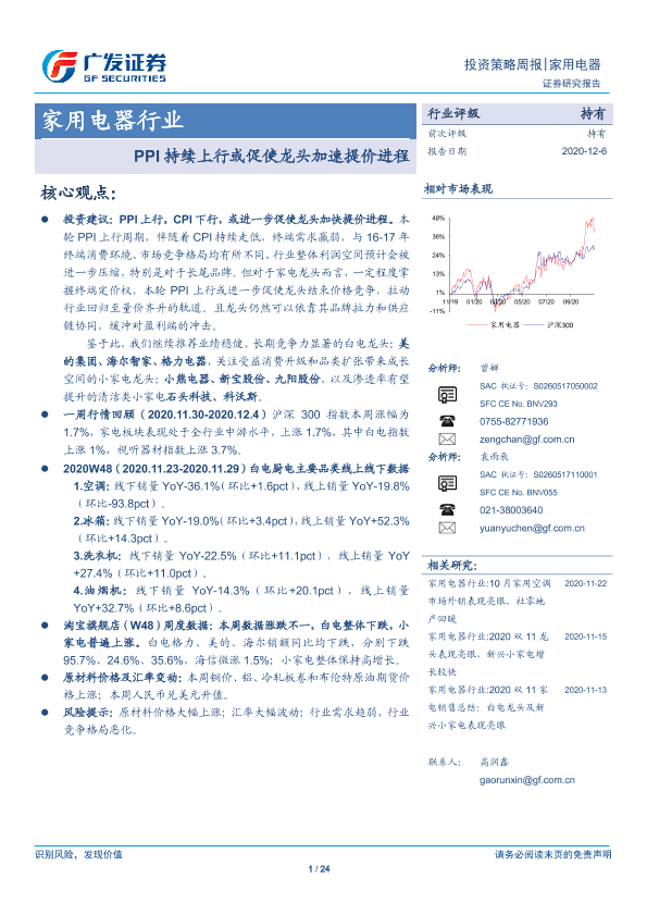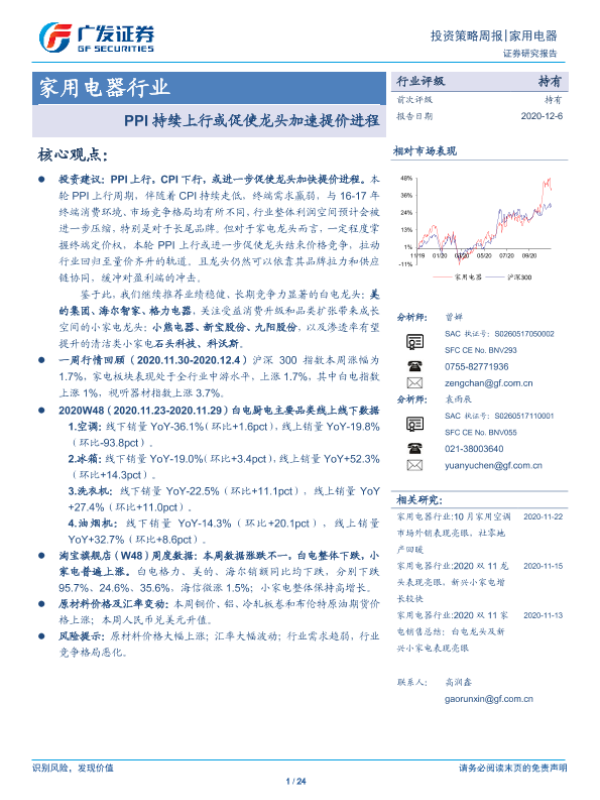 【广发证券】【20201206】家用电器行业投资策略周报:PPI持续上行或促使龙头加速提价进程-24页