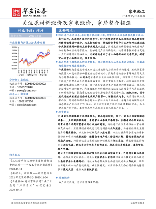 【华安证券】【20201206】20201206-华安证券-家电轻工行业周报:关注原材料涨价及家电涨价,家居整合提速-18页