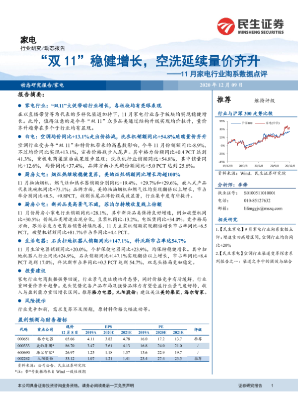 【民生证券】【20201209】“双11”稳健增长,空洗延续量价齐升——11月家电行业淘系数据点评-16页
