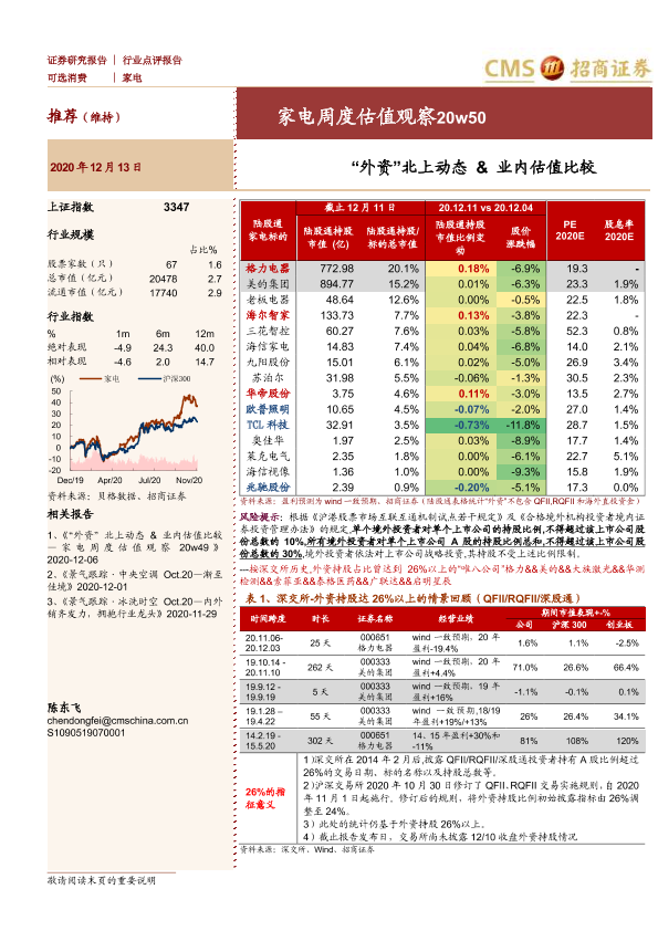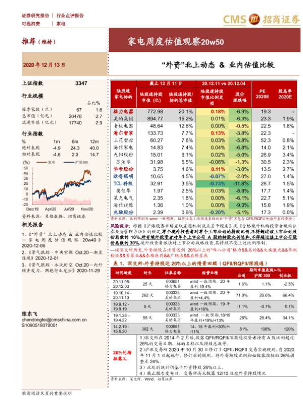 【海通证券】【20201213】家电周度估值观察20w50:“外资”北上动态&业内估值比较-3页
