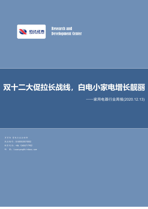 【信达证券】【20201213】20201213-信达证券-家用电器行业周报:双十二大促拉长战线,白电小家电增长靓丽-10页
