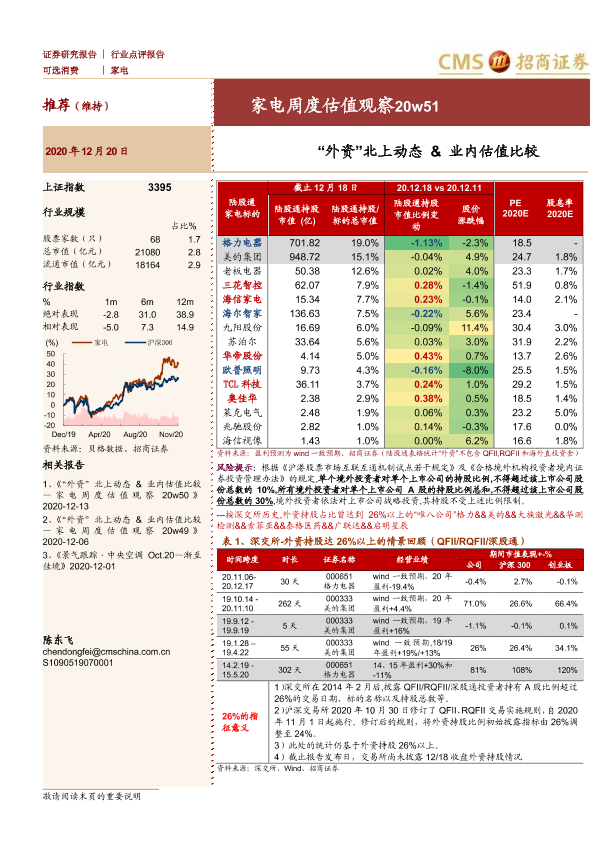 【海通证券】【20201220】家电周度估值观察:“外资”北上动态&业内估值比较-3页