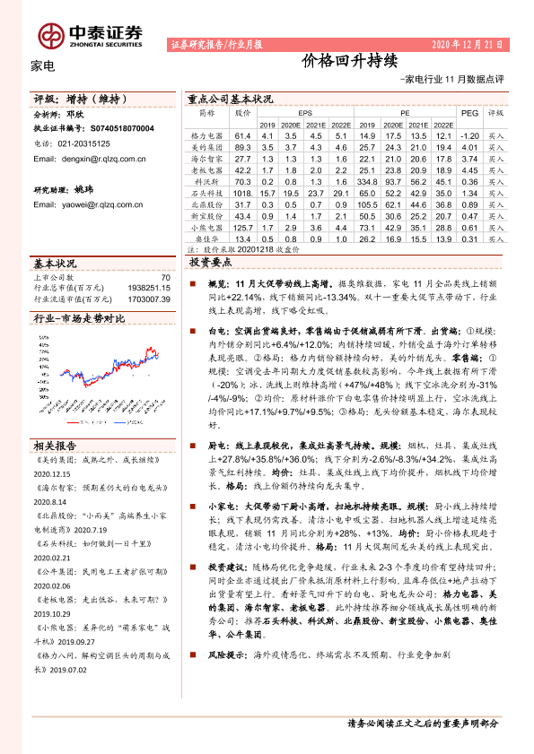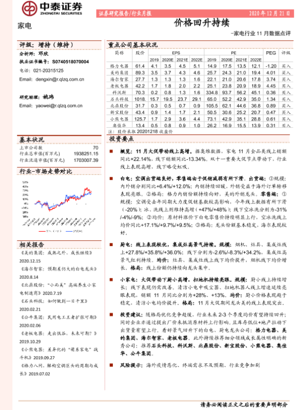 【中泰证券】【20201221】家电行业11月数据点评:价格回升持续-15页