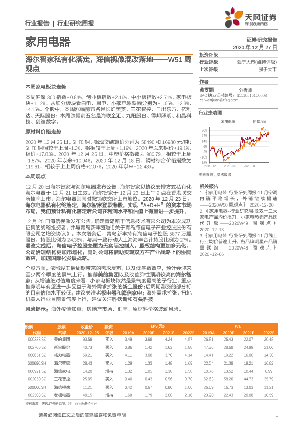 【天风证券】【20201227】家用电器W51周观点:海尔智家私有化落定,海信视像混改落地-11页