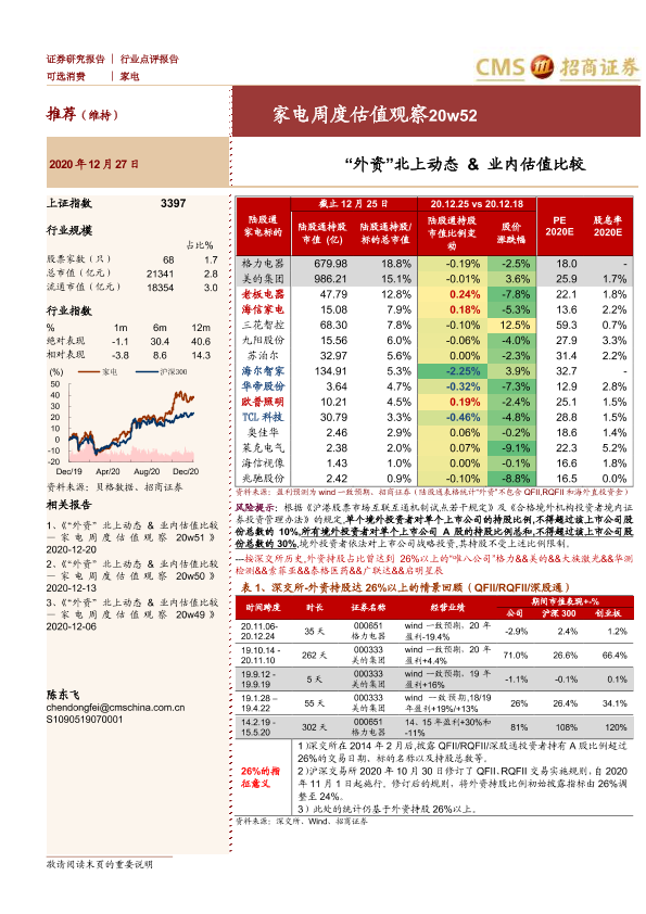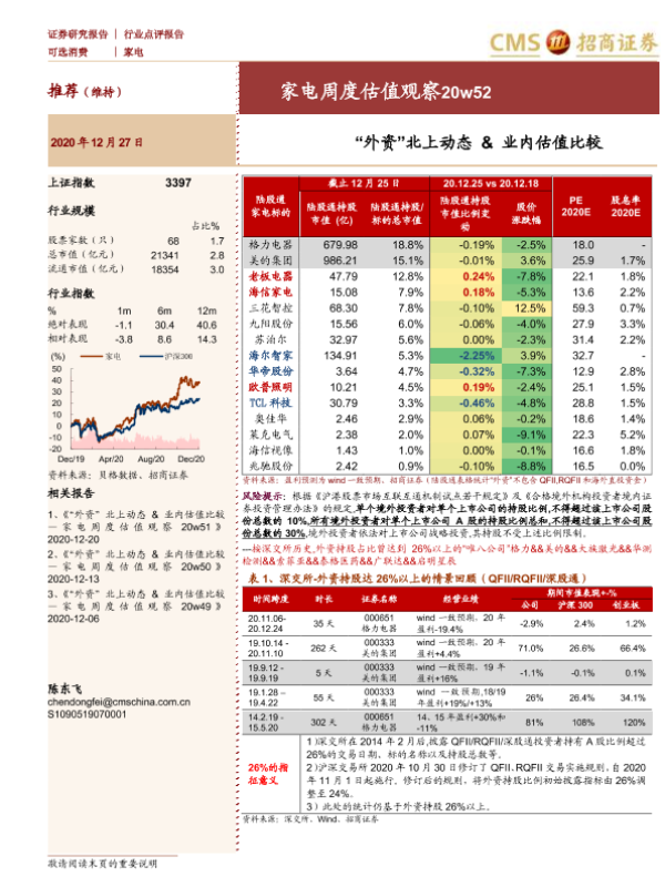 【海通证券】【20201227】家电周度估值观察20w52:“外资”北上动态&业内估值比较-3页