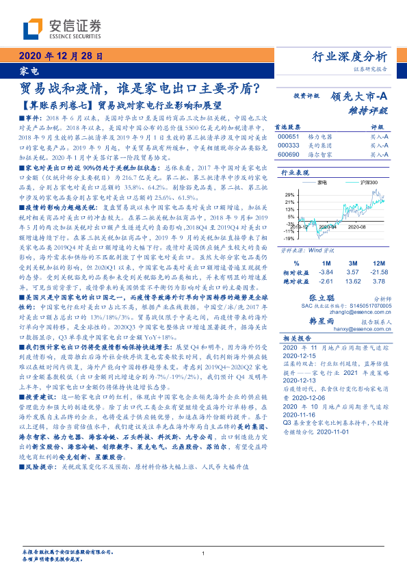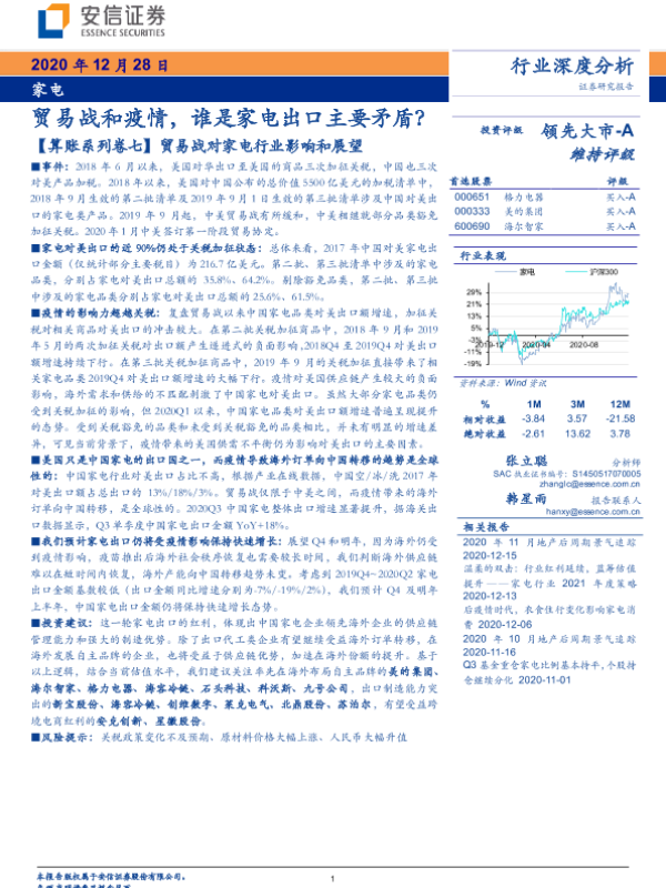 【安信证券】【20201228】贸易战对家电行业影响和展望:贸易战和疫情,谁是家电出口主要矛盾?-15页