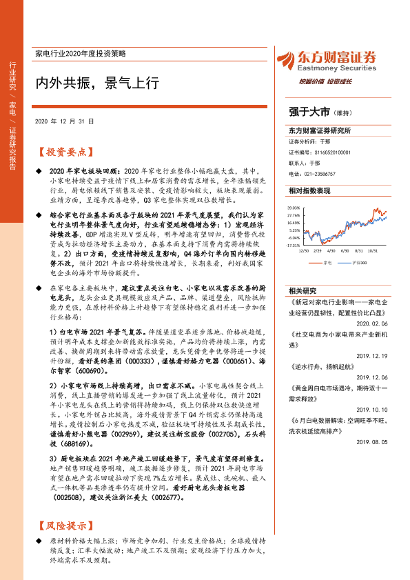 【东方财富证券】【20201231】家电行业2020年度投资策略:内外共振,景气上行-27页
