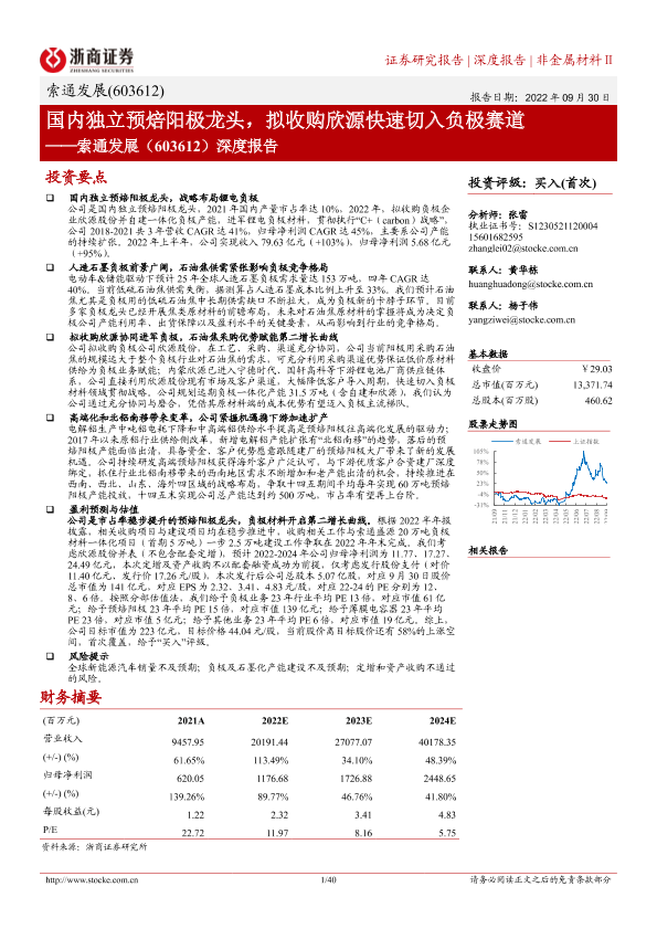 【浙商证券】【20220930】国内独立预焙阳极龙头,拟收购欣源快速切入负极赛道-40页