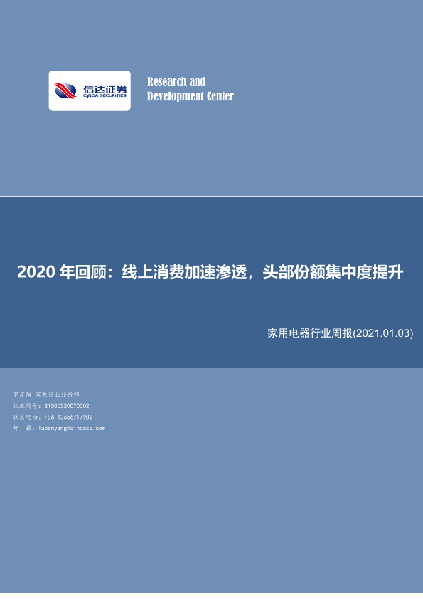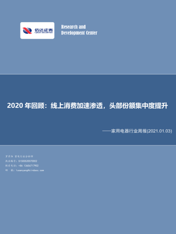 【信达证券】【20210103】20210103-信达证券-家用电器行业周报:2020年回顾:线上消费加速渗透,头部份额集中度提升-12页
