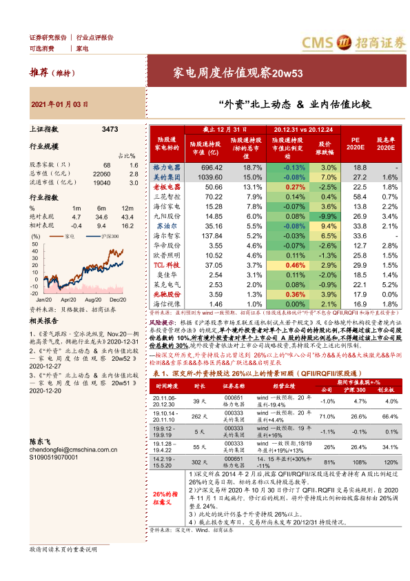 【海通证券】【20210103】家电周度估值观察20w53:“外资”北上动态&业内估值比较-3页