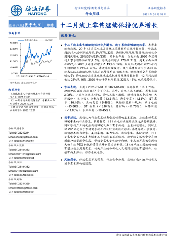 【海通证券】【20210110】20210110-海通证券-家用电器与器具行业周报:十二月线上零售继续保持优异增长-4页