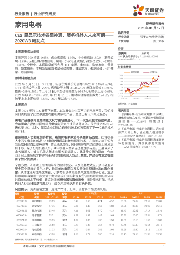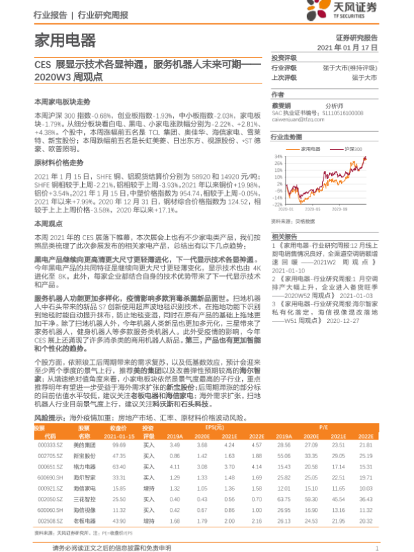 【天风证券】【20210117】家用电器2020W3周观点:CES展显示技术各显神通,服务机器人未来可期-12页