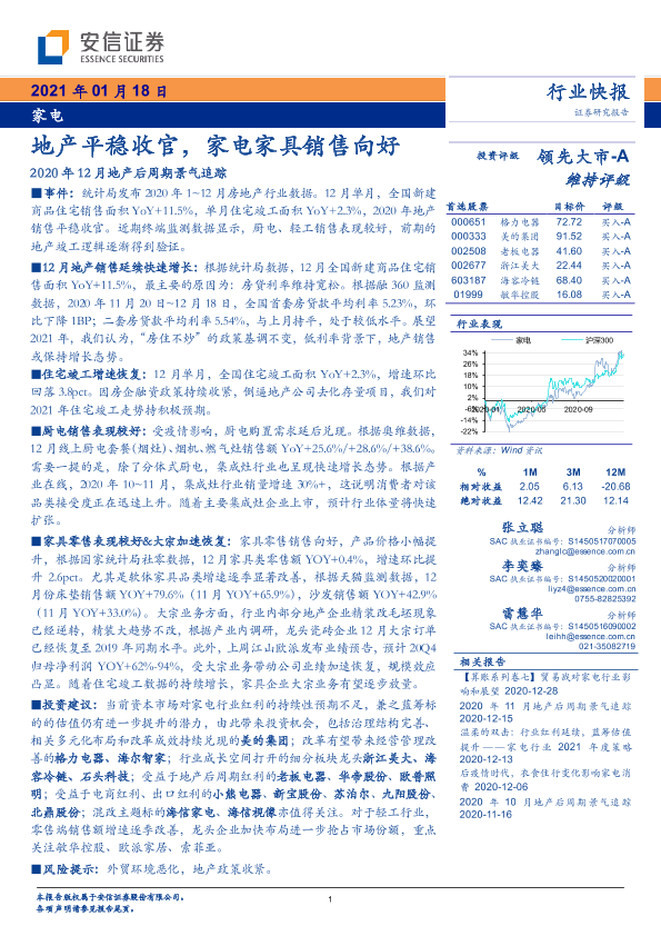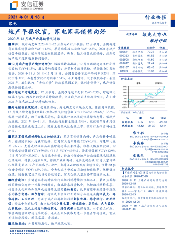 【安信证券】【20210118】家电2020年12月地产后周期景气追踪:地产平稳收官,家电家具销售向好-4页
