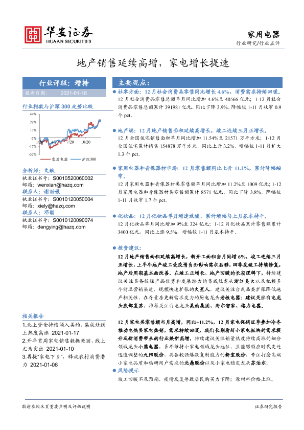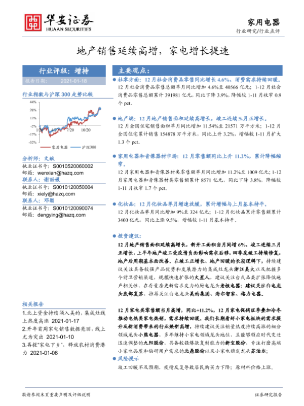 【华安证券】【20210118】家用电器行业点评:地产销售延续高增,家电增长提速-10页