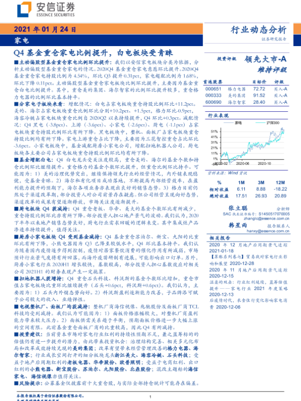 【安信证券】【20210124】Q4基金重仓家电比例提升,白电板块受青睐-12页