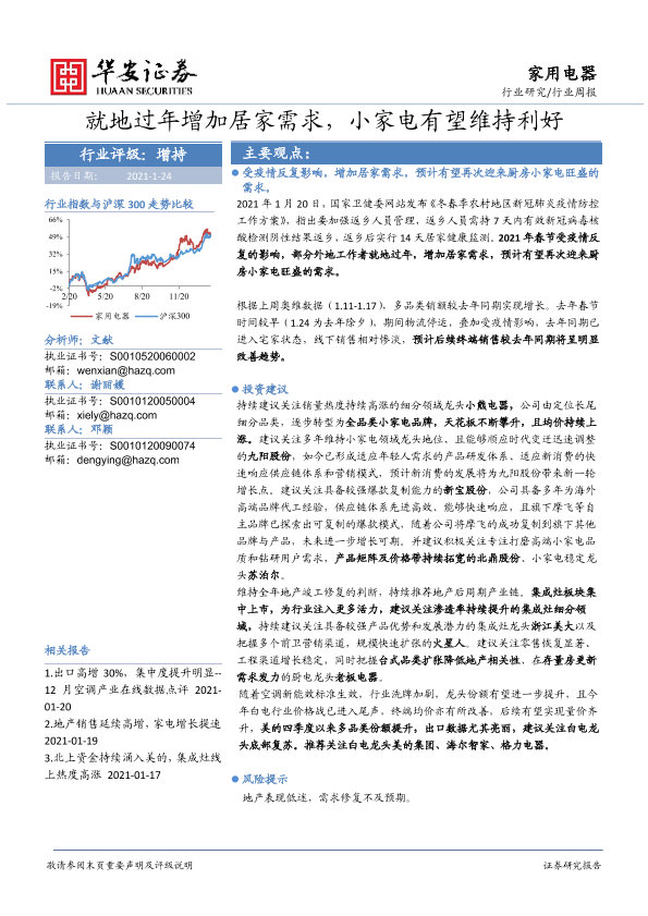 【华安证券】【20210124】20210124-华安证券-家用电器行业周报:就地过年增加居家需求,小家电有望维持利好-16页