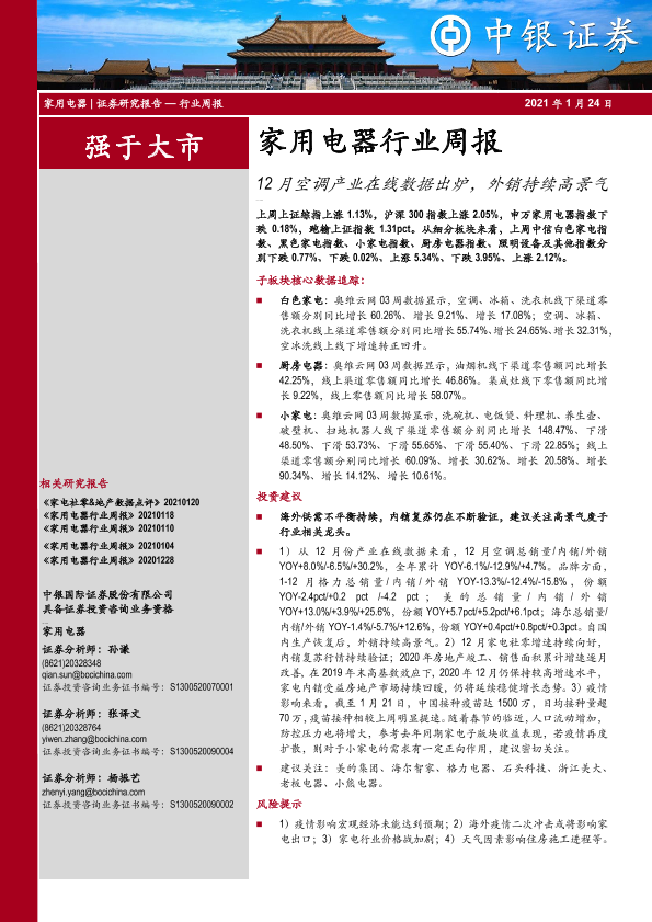 【中银证券】【20210124】家用电器行业周报:12月空调产业在线数据出炉,外销持续高景气-28页
