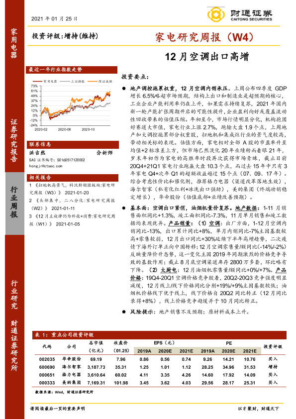 【财通证券】【20210125】20210125-财通证券-家电研究周报(W4):12月空调出口高增-21页