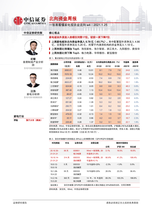 【中信证券】【20210125】一张表看懂家电股资金流向w4:北向资金周报-2页