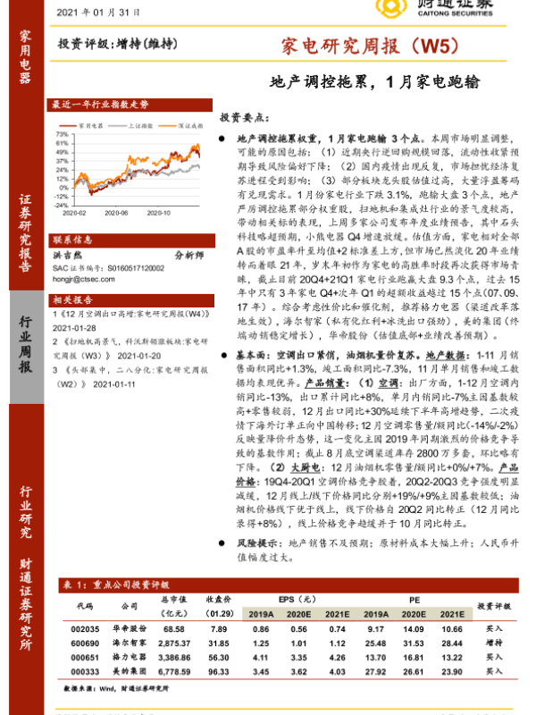 【财通证券】【20210131】20210131-财通证券-家电研究周报(W5):地产调控拖累,1月家电跑输-21页