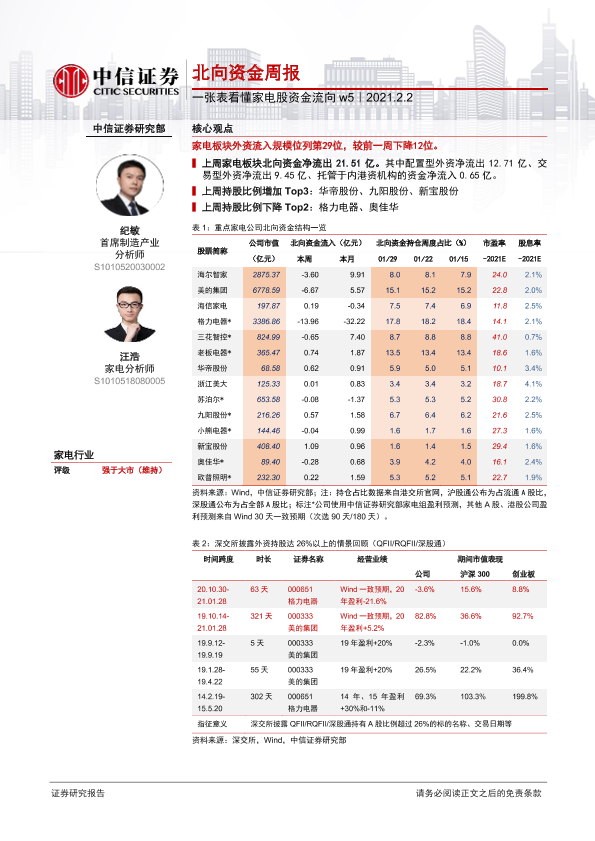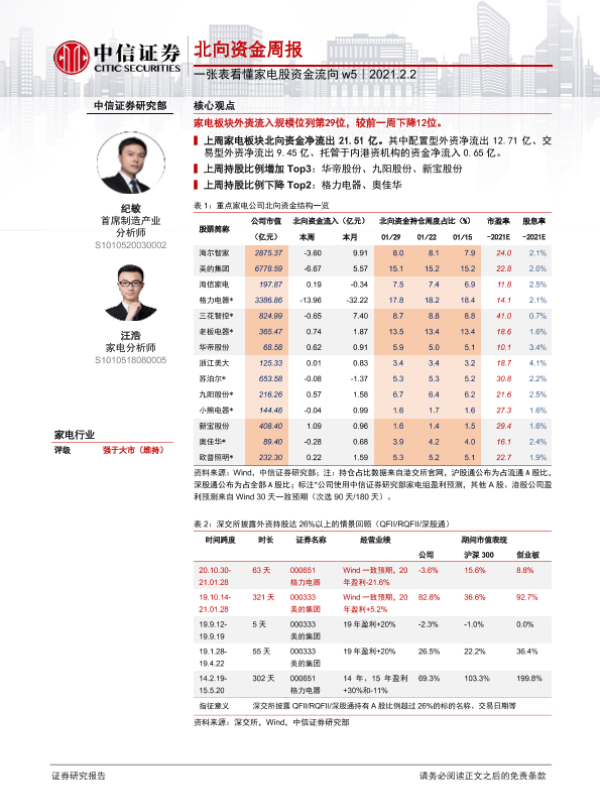 【中信证券】【20210202】一张表看懂家电股资金流向 w5:北向资金周报-2页