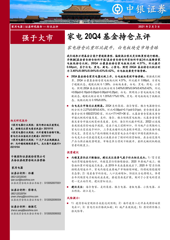【中银证券】【20210203】家电20Q4基金持仓点评:家电持仓比重环比提升,白电板块受市场青睐-10页