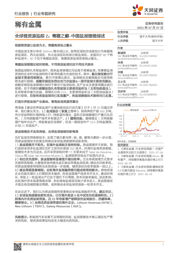 【天风证券】【20210707】稀有金属行业全球锂资源追踪2:青藏之巅~中国盐湖提锂综述-12页