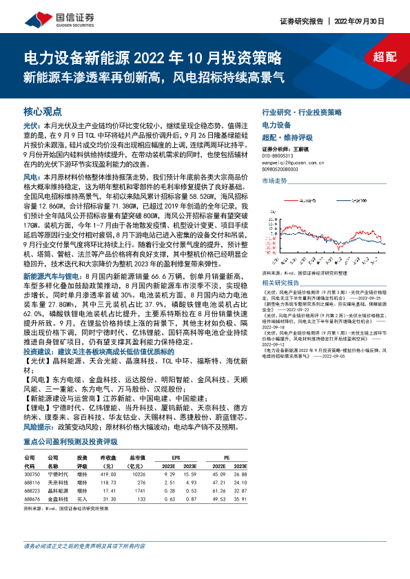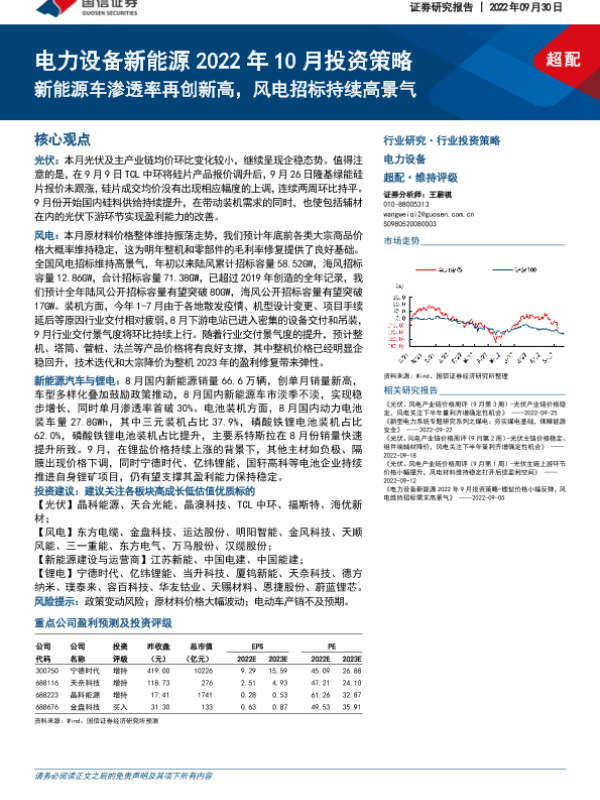 【国信证券】【20220930】电力设备新能源2022年10月投资策略:新能源车渗透率再创新高,风电招标持续高景气-20页