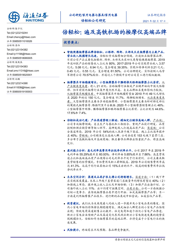 【海通证券】【20210217】倍轻松:遍及高铁机场的按摩仪高端品牌-19页
