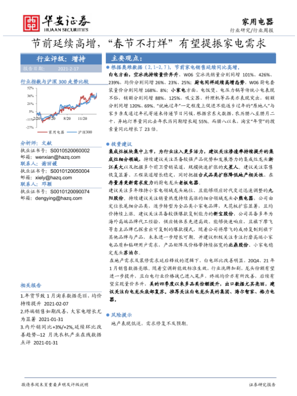 【华安证券】【20210217】20210217-华安证券-家用电器行业周报:节前延续高增,“春节不打烊”有望提振家电需求-16页