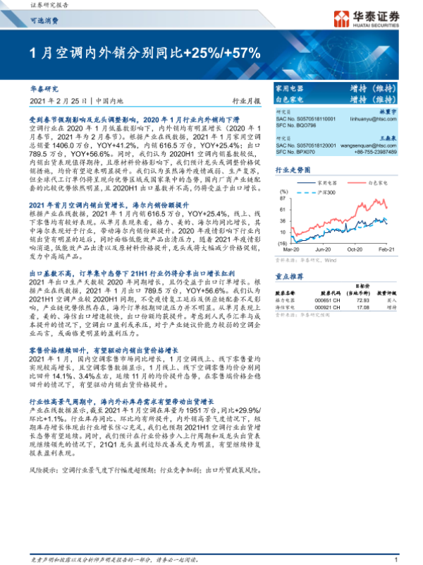 【华泰证券】【20210225】20210225-华泰证券-家用电器行业月报:1月空调内外销分别同比+25% +57%-9页