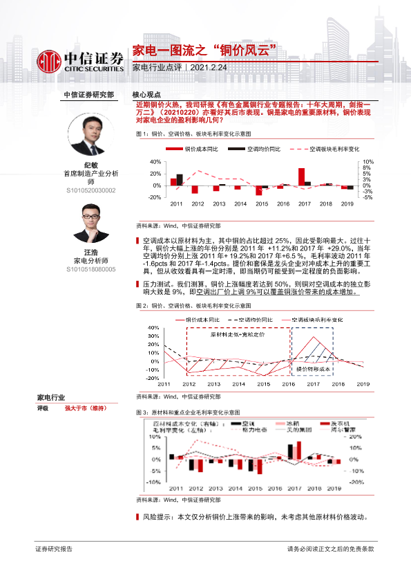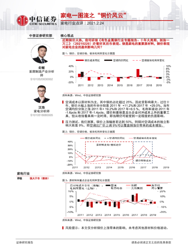 家电行业 市场预测 成本分析 证券研究 铜价影响