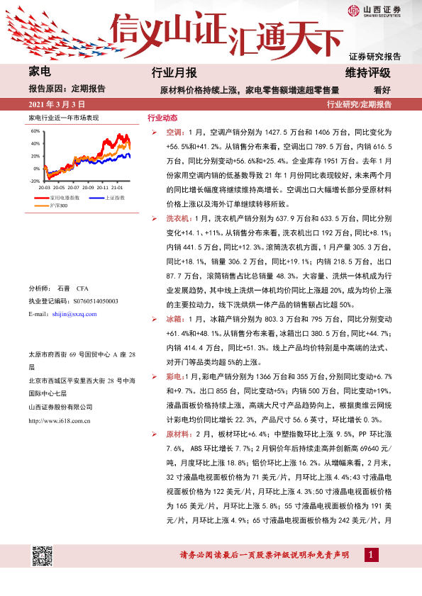 【山西证券】【20210303】20210303-山西证券-家电行业月报:原材料价格持续上涨,家电零售额增速超零售量-15页