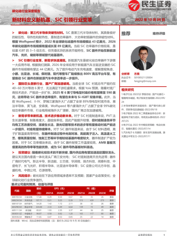 【民生证券】【20221008】碳化硅行业深度报告:新材料定义新机遇,SiC引领行业变革-80页