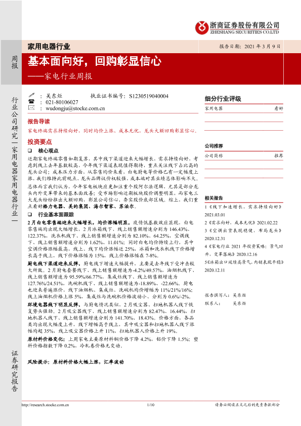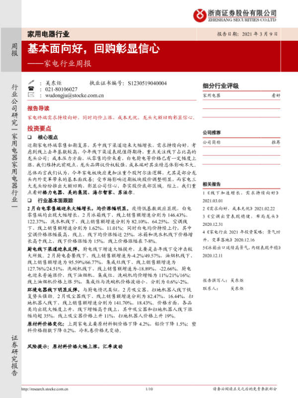 【浙商证券】【20210309】20210309-浙商证券-家电行业周报:基本面向好,回购彰显信心-10页