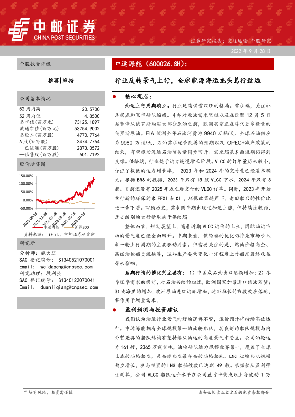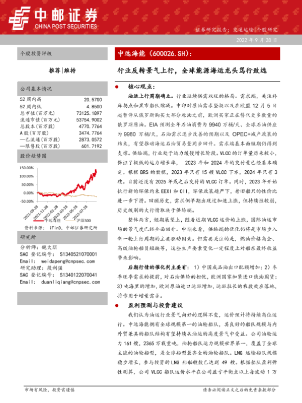 【中邮证券】【20220928】行业反转景气上行,全球能源海运龙头笃行致远-26页