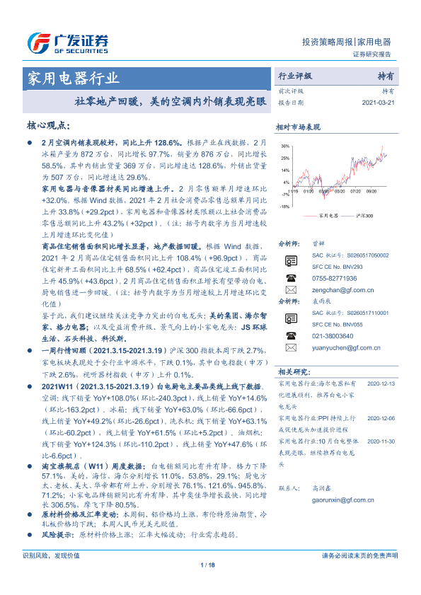【广发证券】【20210321】家用电器行业:社零地产回暖,美的空调内外销表现亮眼-18页