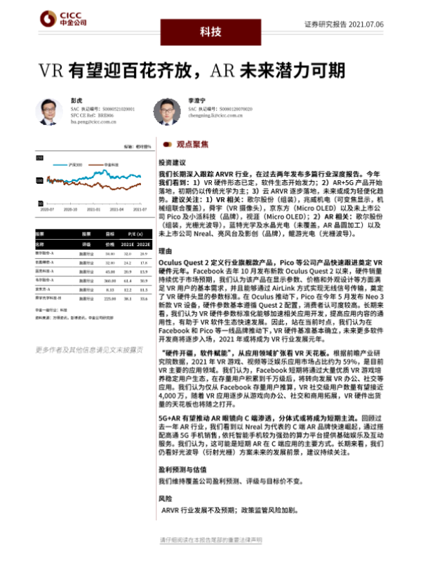 【中金公司】【20210706】科技行业:VR有望迎百花齐放,AR未来潜力可期-34页