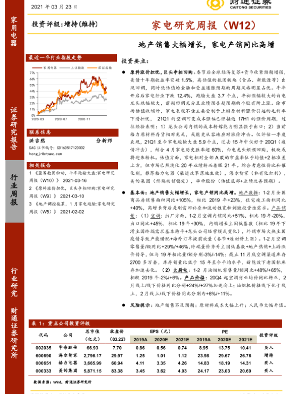【财通证券】【20210323】20210323-财通证券-家电研究周报(W12):地产销售大幅增长,家电产销同比高增-20页
