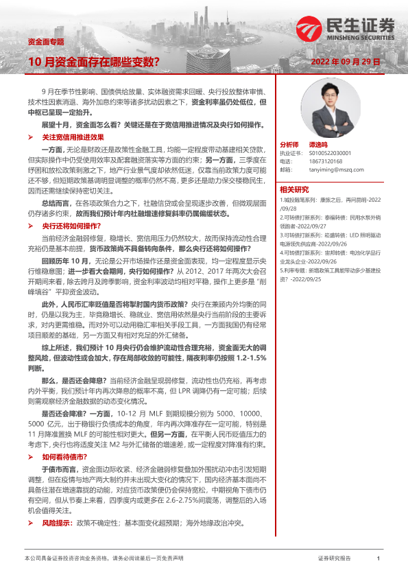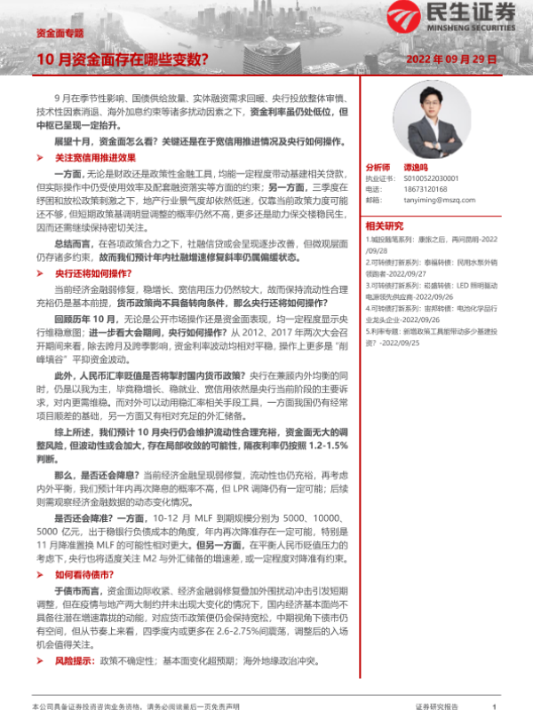 【民生证券】【20220929】资金面专题:10月资金面存在哪些变数?-26页