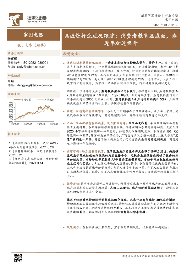 【德邦证券】【20210401】家用电器行业专题:集成灶行业近况跟踪:消费者教育显成效,渗透率加速提升-11页