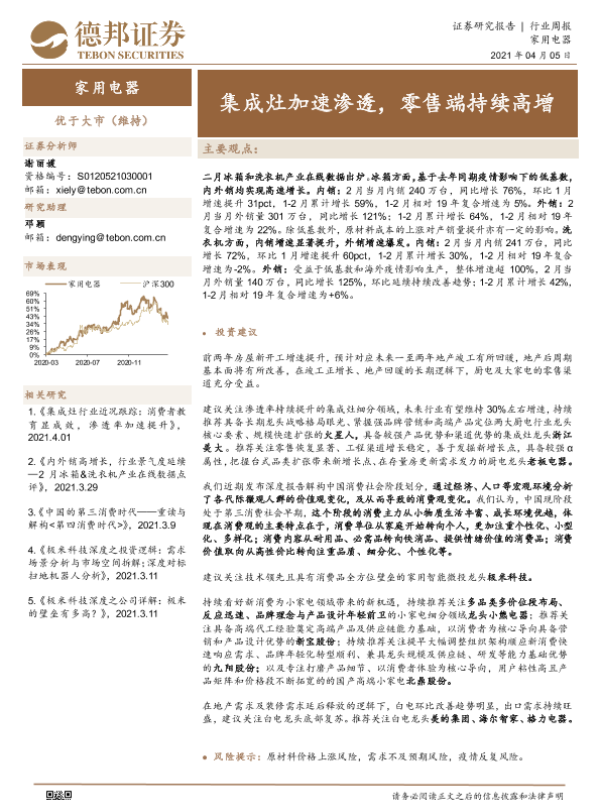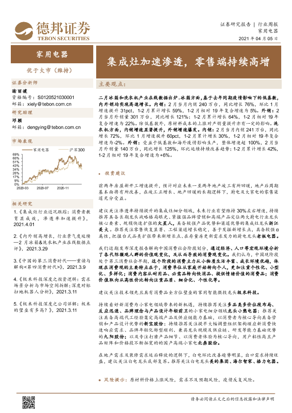 【德邦证券】【20210405】家用电器行业周报:集成灶加速渗透,零售端持续高增-15页
